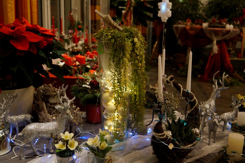 In gemütlicher und stimmungsvoller Atmosphäre kann man die Faszination von Licht in der Dunkelheit spüren und sich von geschmackvollen Gestecken, Gebinden, Sträußen, Kränzen und Accessoires verzaubern lassen.